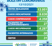 A Secretaria Municipal de Saúde, por meio da Vigilância Epidemiológica, informa que, hoje, 13 de outubro de 2021, 14 (quatorze) pessoas estão devidamente recuperadas da Covid-19. Foram notificados e confirmados…