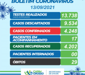 A Secretaria Municipal de Saúde, por meio da Vigilância Epidemiológica, informa que, hoje, 13 de setembro de 2021, 08 (oito) pessoas estão devidamente recuperadas da Covid-19. Foi notificado e confirmado…