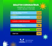 A Secretaria Municipal de Saúde, por meio da Vigilância Epidemiológica, informa que, neste domingo, dia 19 de Julho de 2020, foi notificado e confirmado mais 01 (um) novo caso POSITIVO…