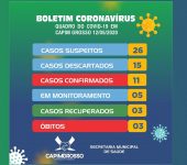 A Secretaria Municipal de Saúde, por meio da Vigilância Epidemiológica, vem informar que nesta terça-feira, 12 de maio de 2020, 02 (dois) casos de Coronavírus-COVID-19 do município, estão devidamente RECUPERADOS….