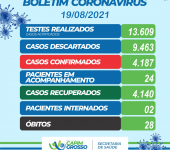 A Secretaria Municipal de Saúde, por meio da Vigilância Epidemiológica, informa que, hoje, 20 de agosto de 2021, nenhuma pessoa está devidamente recuperada da Covid-19. Foi notificado e confirmado 01…